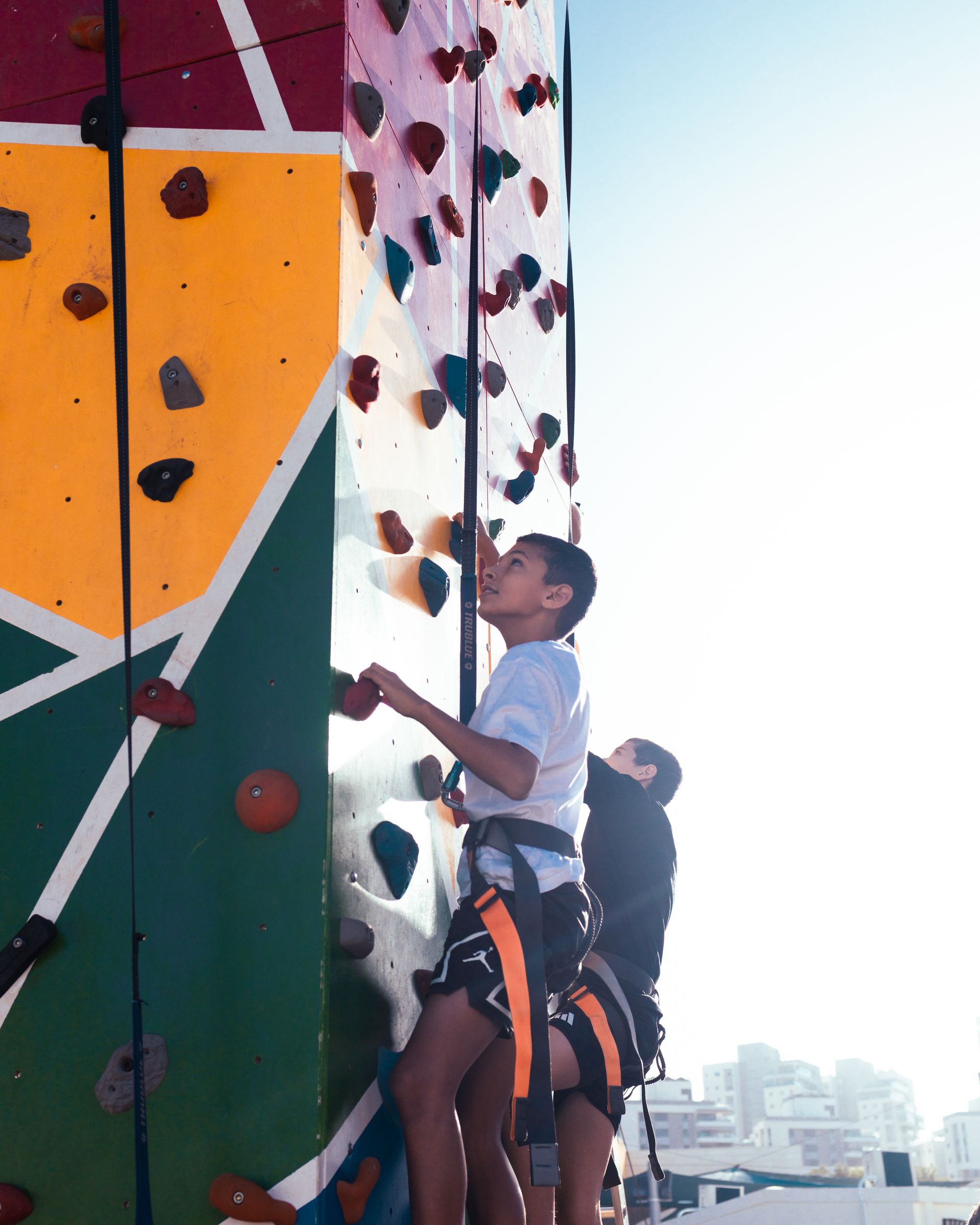 קיר הטיפוס שלנו הוא בגובה של 6 מ' אך ניתן להאריך אותו עד גובה של 8.5 מ'. הוא מציע מסלולי טיפוס שונים ברמות קושי מגוונות. זו אטרקציה שמשלבת אתגר פיזי ומנטלי - היא מחזקת את השרירים, משפרת קואורדינציה ותנועתיות, ובעיקר - מעניקה תחושת הישג עצומה כשמגיעים לפסגה.