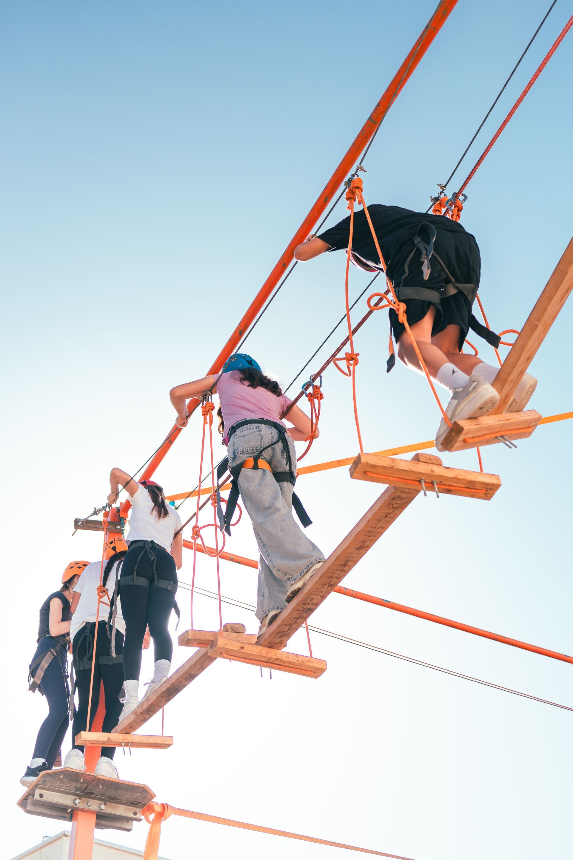פארק החבלים הנייד שלנו מאפשר פעילות בו-זמנית של מספר משתתפים, עם מערכת בטיחות כפולה שכוללת רתמות מקצועיות, מסלולים ומדריכים שנמצאים עבורכם בכל רגע. ילדים החל מגיל 8 יכולים כבר להתחיל ולהתמודד עם המסלולים הקלים יותר, בעוד שמבוגרים יכולים לאתגר את עצמם במסלולים המתקדמים יותר.