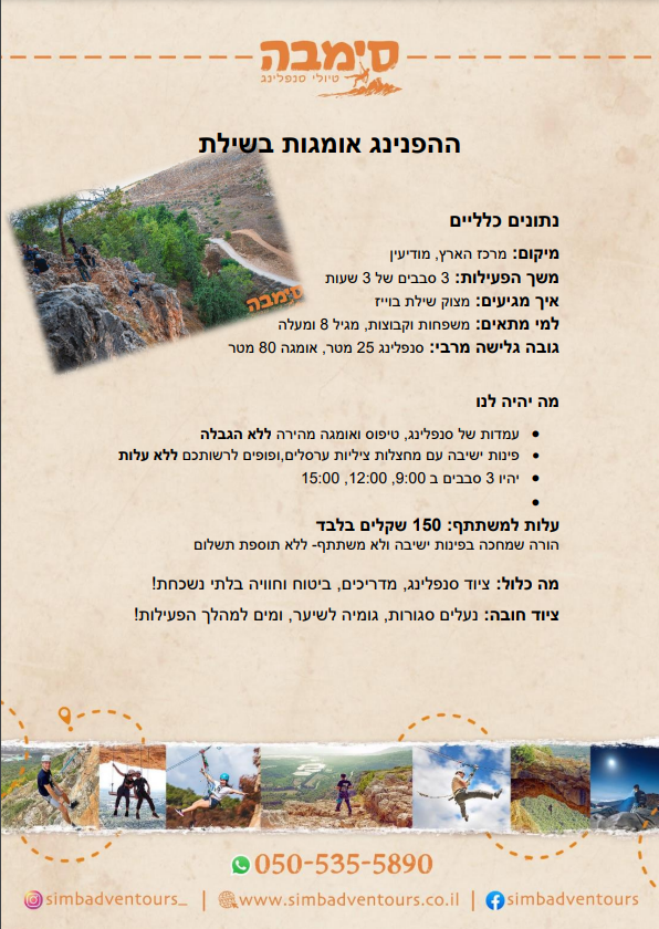 סנפלינג הוא ספורט אתגרי פופולארי ונפוץ, אך האם ניתן להתאים אותו גם לילדים? וודאי שכן! "סימבה – טיולי סנפלינג" מציעים לכם מגוון של מסלולי סנפלינג שמתאימים במיוחד לילדים, קבוצות ולכל המשפחה. נשמע מעניין? כל הפרטים בשורות הבאות.